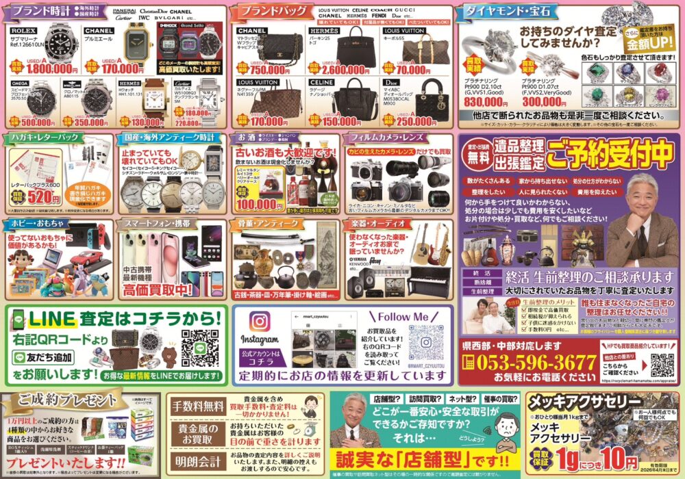 ※リサイクルマート浜松雄踏店・浜松小豆餅店では取扱ができない商材もございます。