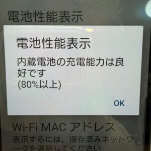 以前、機種変更してそのまま自宅保管していたとの事でした。本体に若干の傷等がありましたが、バッテリーの状態は80%以上と十分でした。IMEIで残債等のチェックを行い、残債等がない事も確認が出来ました。