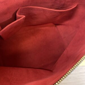 • 機能性: 安心なファスナー開閉式で、内部は赤のスエード素材が使われています。