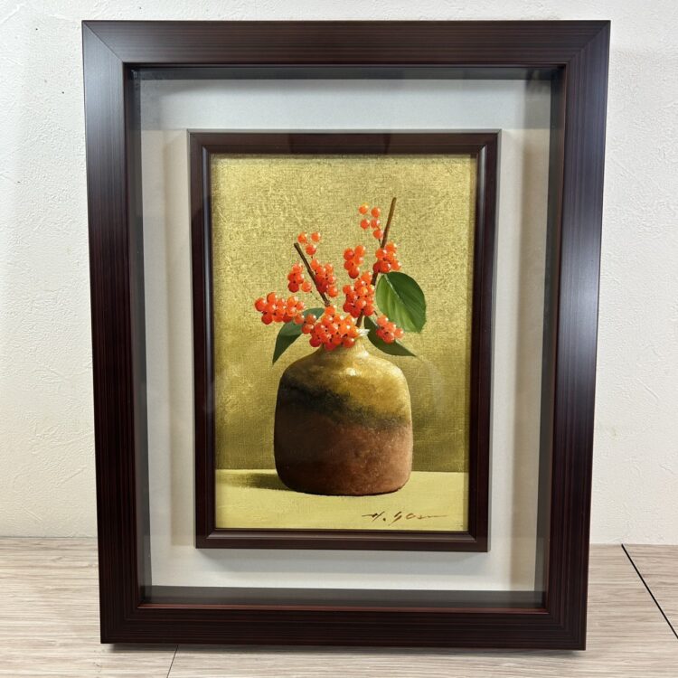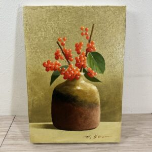【浜松市 中央区 絵画 高価買取】【真作】安田英明 朱い実 和歌山出身 油彩画 油彩 油絵 絵画 美術品 お買取り!